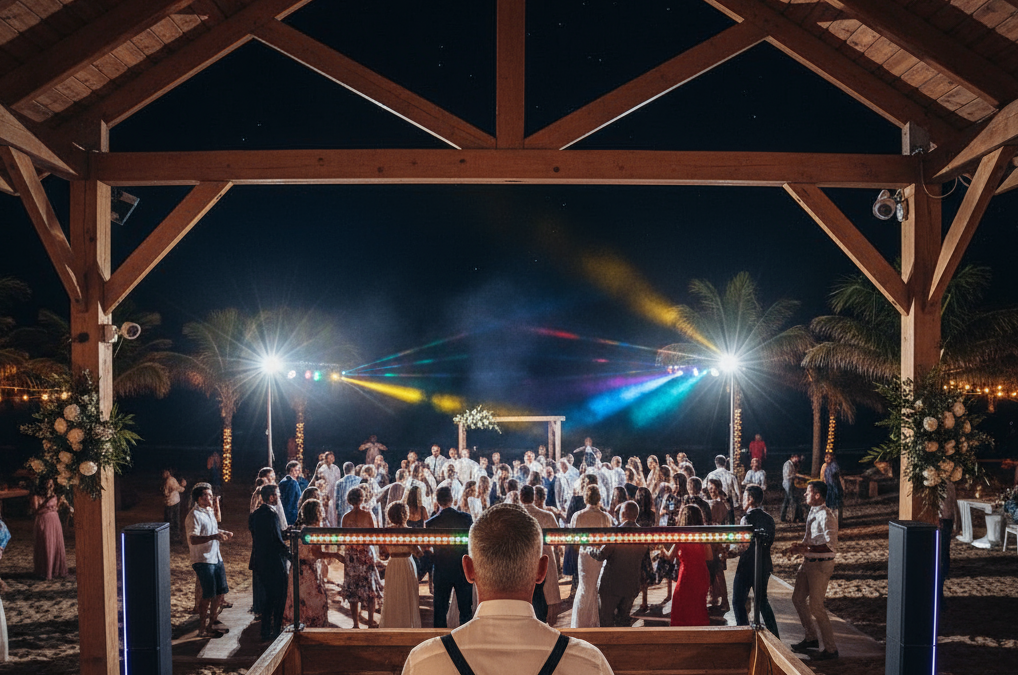 Très professionnel avec un matériel superbe et surtout l’écran qui diffuse soit les danses, soit les paroles des chansons, ce qui est très apprécié par les fêtards.